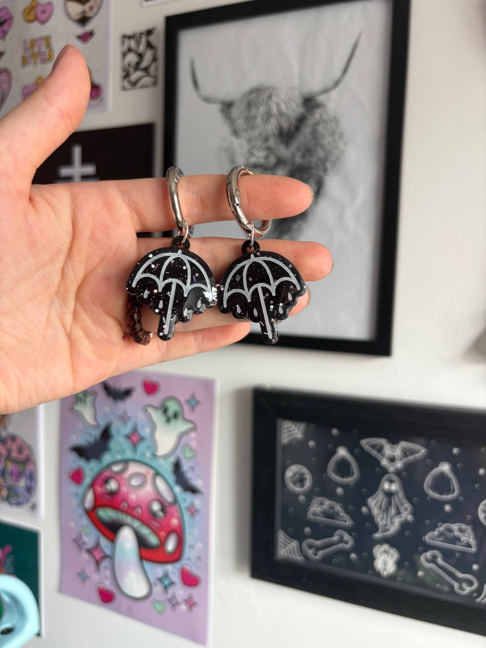These charms are made from epoxy resin and are on silver hoop clasps.