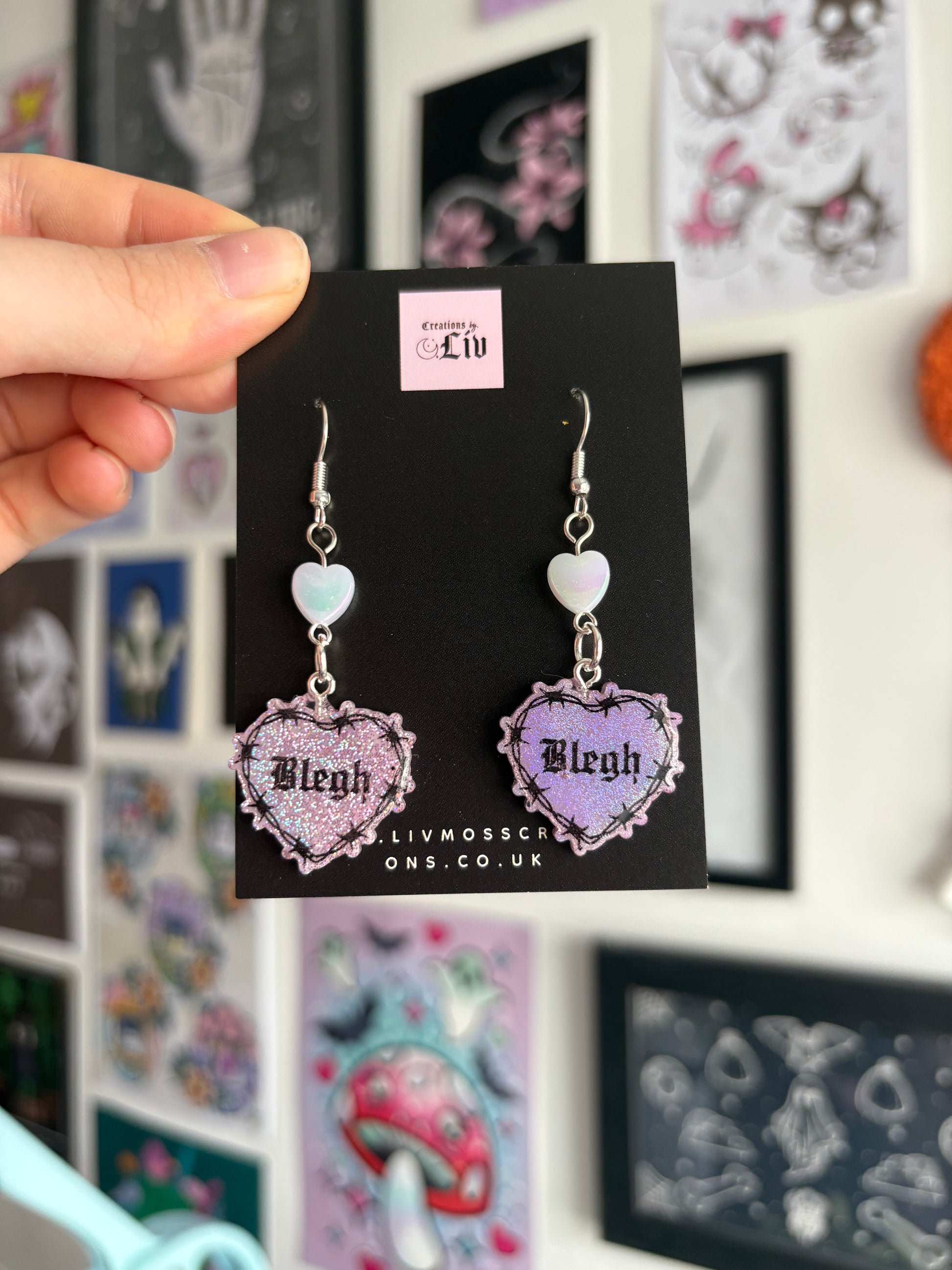 Pink Holographic Small Blegh Barbed Heart Earrings