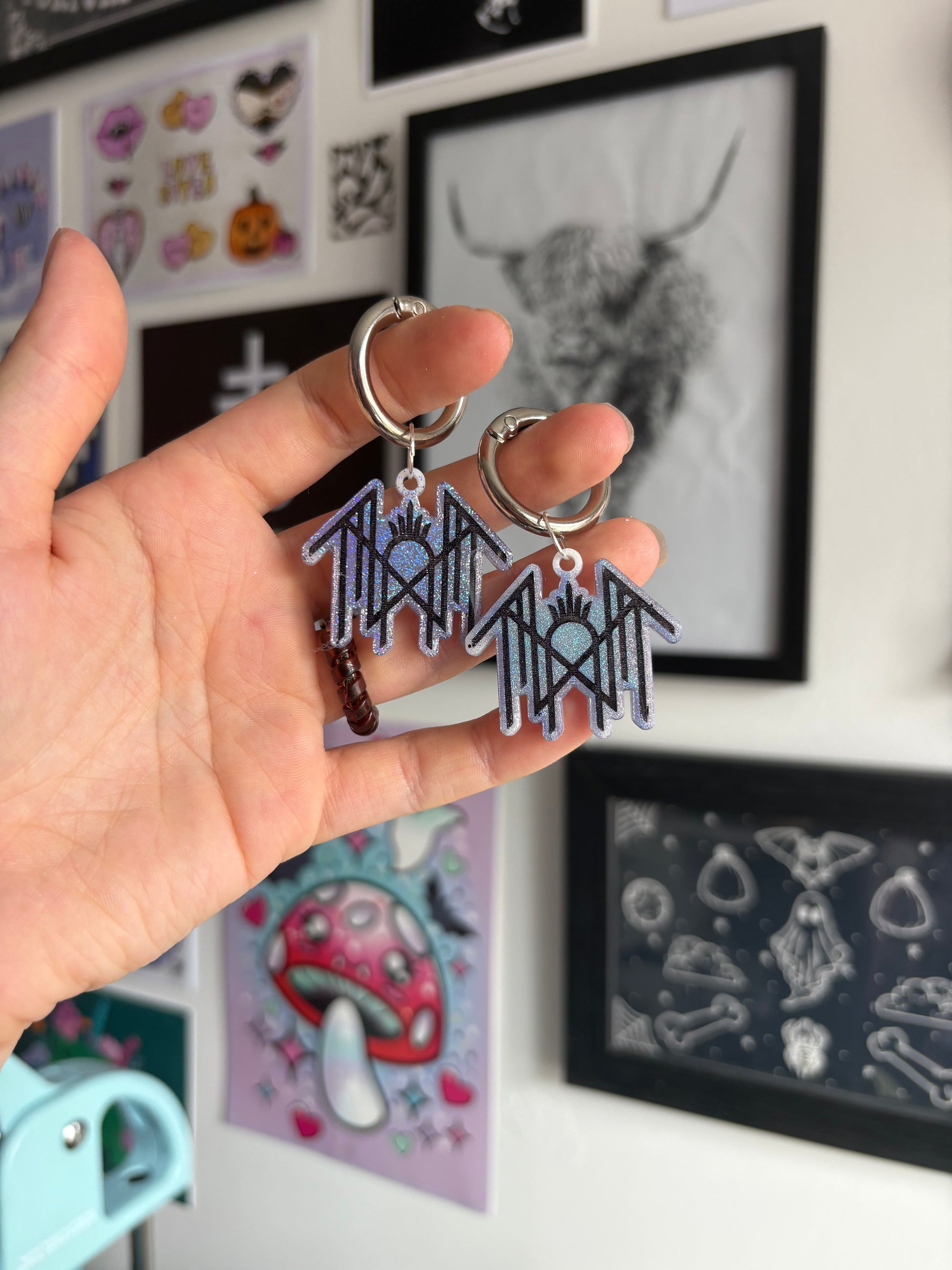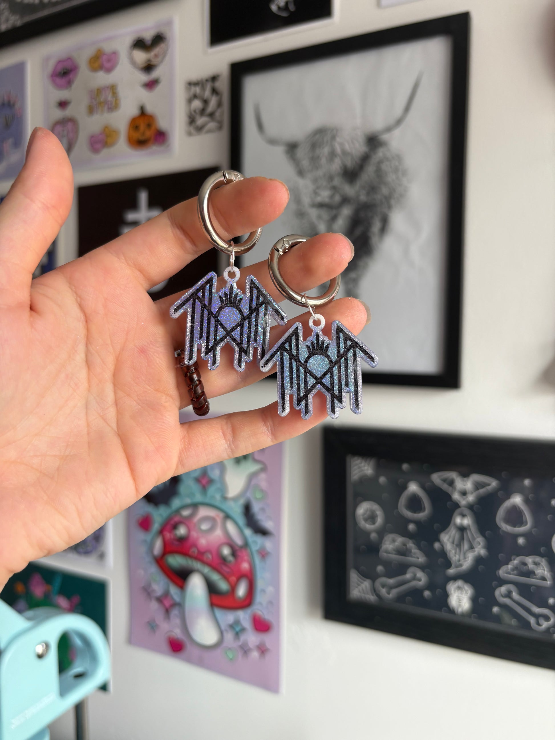 These charms are made from epoxy resin and are on silver hoop clasps.